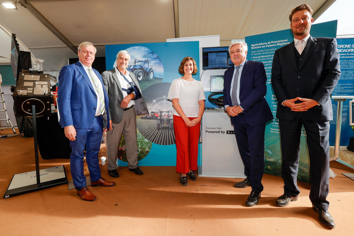 11 October 2025, Rome, Italy. Beth Bechdol, Deputy Director-General, FAO and Carlo Lambro, Vice president CEMA stand for a photo at the FAO Global Exhibition: From Seeds to Foods. (Porta Capena Park).