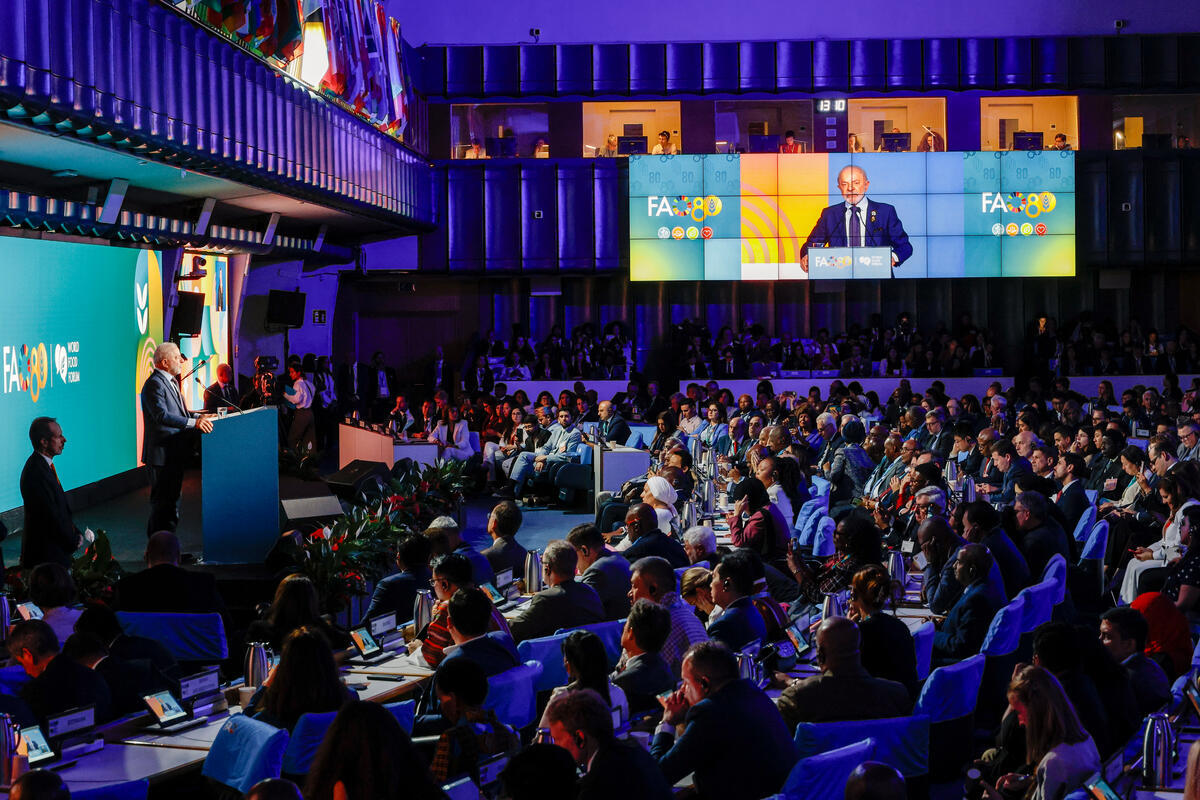 13 October 2025, Rome, Italy. Luiz Inácio Lula da Silva, President of Brazil delivers his speech at the World Food Forum (WFF) 2025 Grand Opening. The fifth edition of the World Food Forum (WFF), the largest annual gathering of agrifood systems stakeholders globally, runs at FAO headquarters in Rome from 10 to 17 October 2025. FAO Headquarters (Plenary Hall).