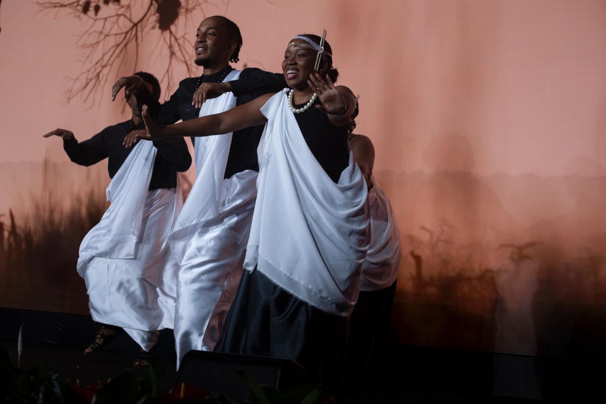 13 October 2025. FAO Headquarters, Rome, Italy. The Inganji Cultural Troupe performs during the Opening Ceremony of the Global Youth Forum at the World Food Forum 2025.
