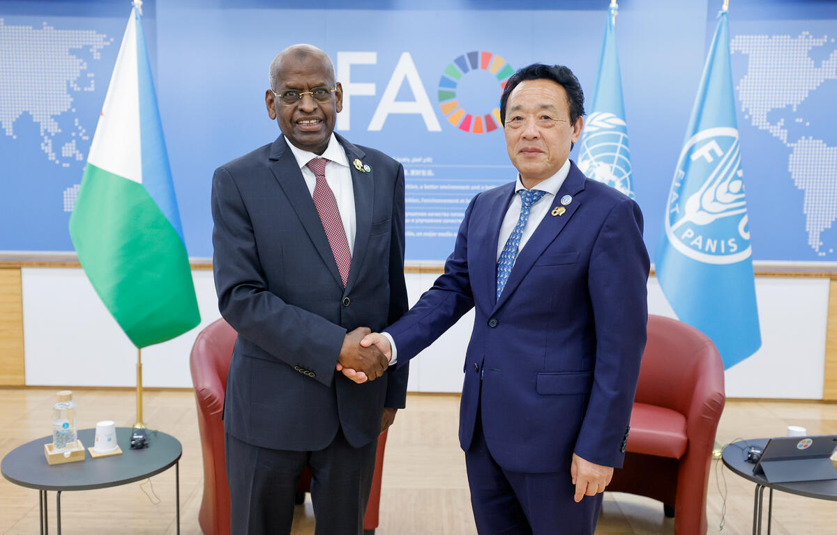 ITALY 2025 - FAO Director-General QU Dongyu meeting Djibouti Prime Minister Abdoulkader Kamil Mohamed.