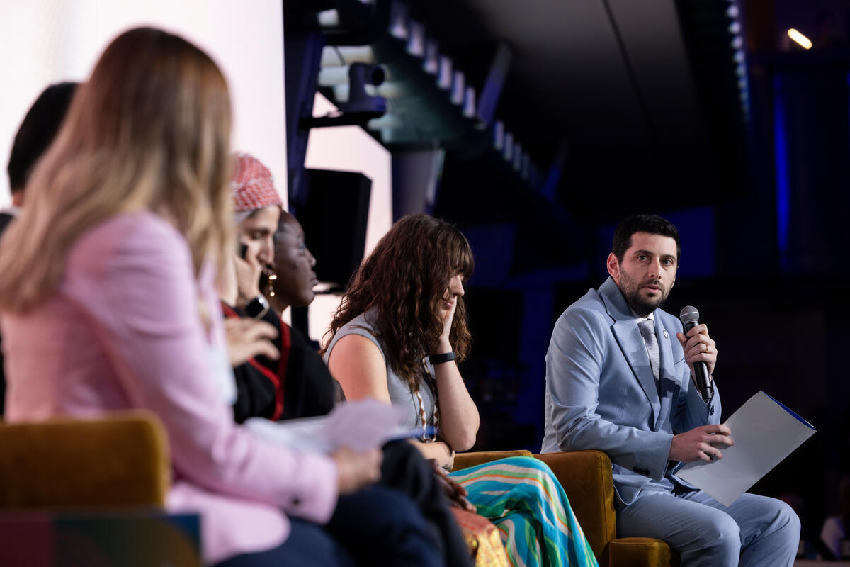 13 October 2025, Rome, Italy. Nicolas Canosa, Director of Extrarregional Cooperation OIJ (1st from R) attends the Intergenerational Roundtable: Youth in agrifood policy and governance. Global Youth Forum. The fifth edition of the World Food Forum (WFF), the largest annual gathering of agrifood systems stakeholders globally, runs at FAO headquarters in Rome from 10 to 17 October 2025. FAO Headquarters (Plenary Hall).