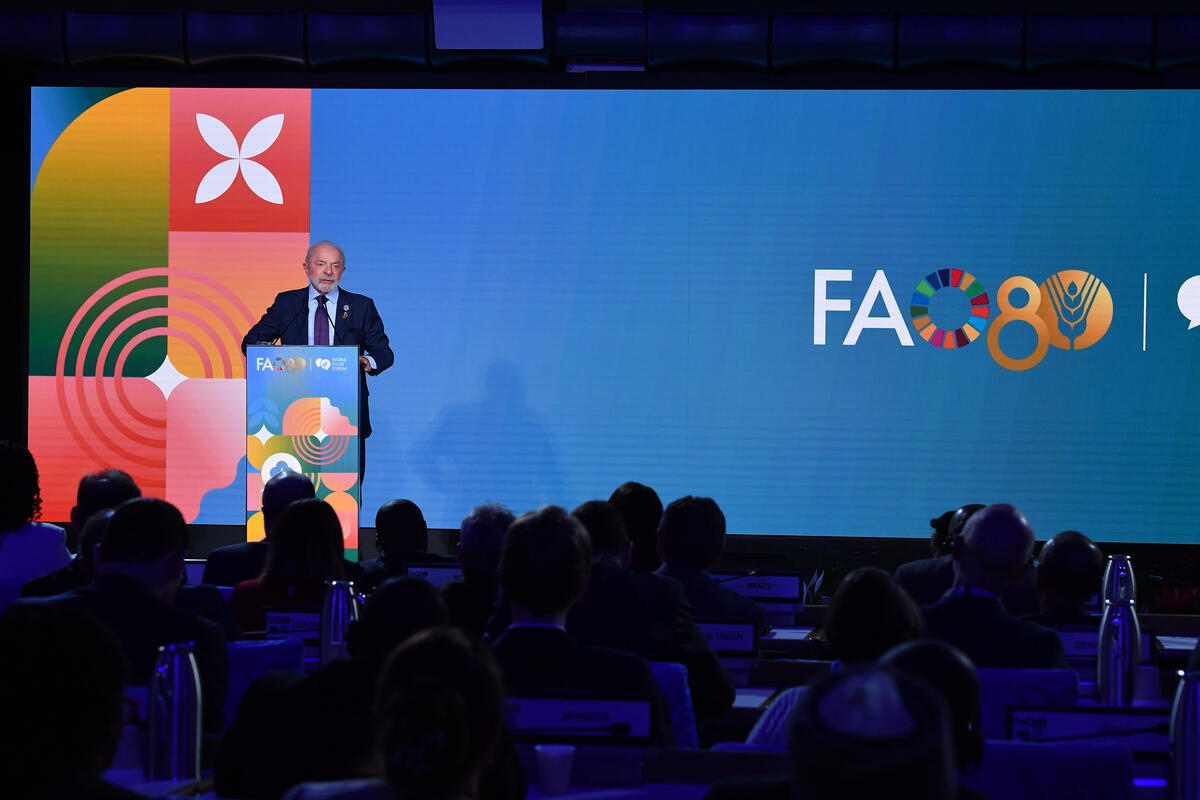 13 october 2025. FAO Headquarters, Rome, Italy. H.E. Luiz Inácio Lula da Silva - President of the Federative Republic of Brazil delivers his address during the Grand Opening at the World Food Forum 2025.