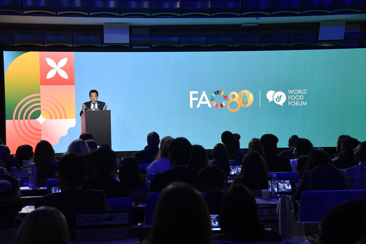 13 October 2025. FAO Headquarters, Rome, Italy. FAO Director-General QU Dongyu delivers his address during the Global Youth Forum Opening Ceremony.