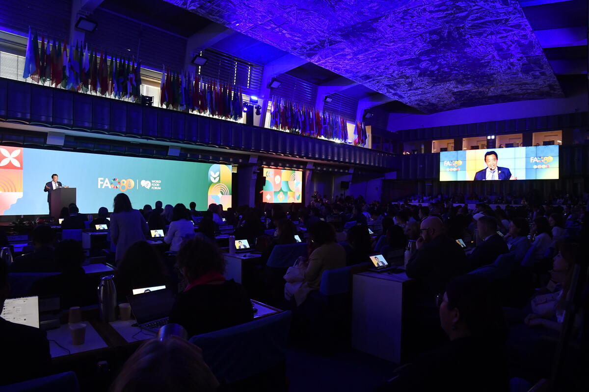 13 October 2025. FAO Headquarters, Rome, Italy. FAO Director-General QU Dongyu delivers his address during the Global Youth Forum Opening Ceremony.