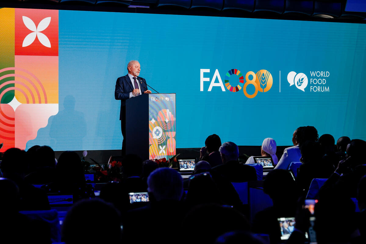 13 October 2025, Rome, Italy. Luiz Inácio Lula da Silva, President of Brazil delivers his speech at the World Food Forum (WFF) 2025 Grand Opening. The fifth edition of the World Food Forum (WFF), the largest annual gathering of agrifood systems stakeholders globally, runs at FAO headquarters in Rome from 10 to 17 October 2025. FAO Headquarters (Plenary Hall).