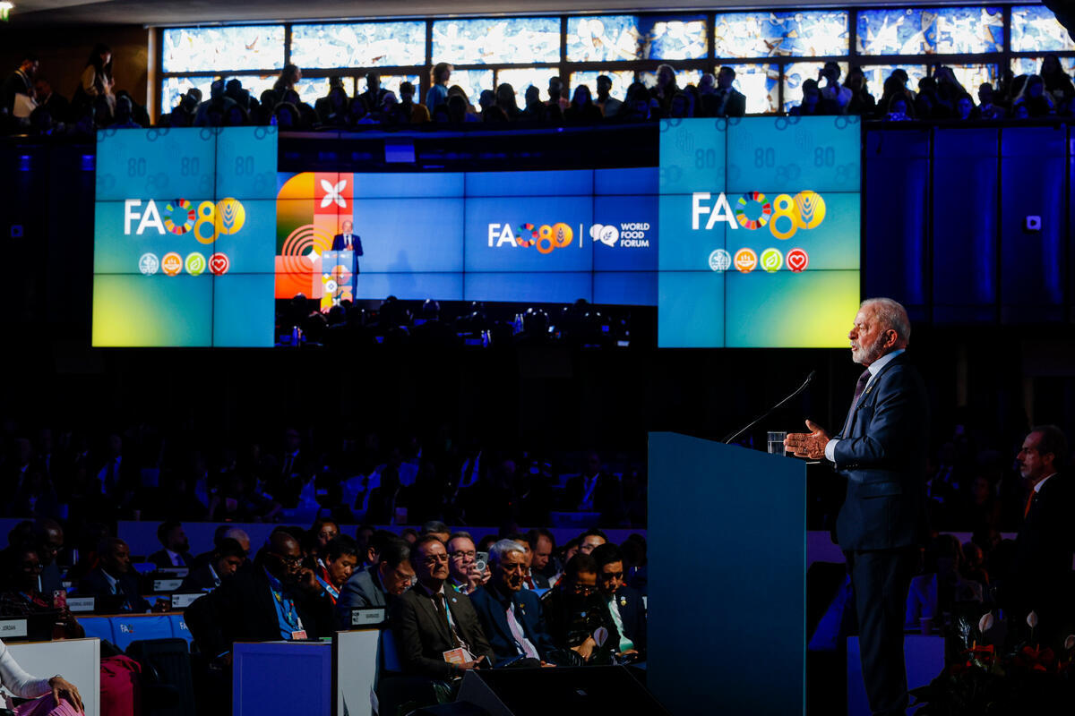 13 October 2025, Rome, Italy. Luiz Inácio Lula da Silva, President of Brazil delivers his speech at the World Food Forum (WFF) 2025 Grand Opening. The fifth edition of the World Food Forum (WFF), the largest annual gathering of agrifood systems stakeholders globally, runs at FAO headquarters in Rome from 10 to 17 October 2025. FAO Headquarters (Plenary Hall).