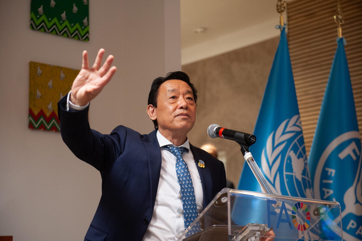 13 October 2025, Rome, Italy. FAO Director-General QU Dongyu and Zimbabwe Minister Agriculture, Fisheries, Water & Rural Development Anxious Jongwe Masuka inaugurate the new Zimbabwe Lounge. World Food Forum (WFF) 2025. The fifth edition of the World Food Forum (WFF), the largest annual gathering of agrifood systems stakeholders globally, runs at FAO headquarters in Rome from 10 to 17 October 2025. FAO Headquarters. (Zimbabwe Lounge).