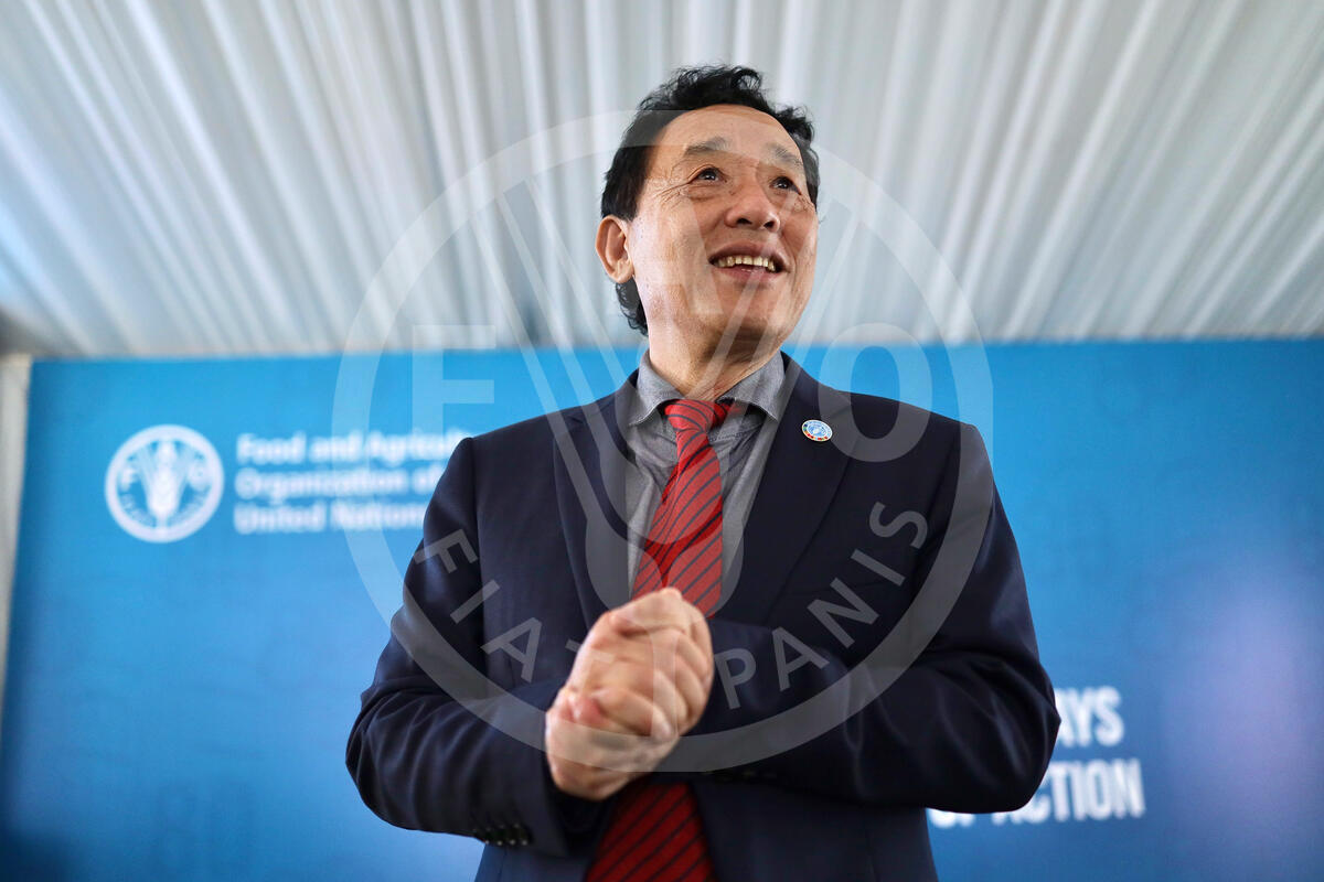 22 July 2025, Kampala, Uganda, FAO Director-General, QU Dongyu smiles during his visit to the FAO Uganda office.
