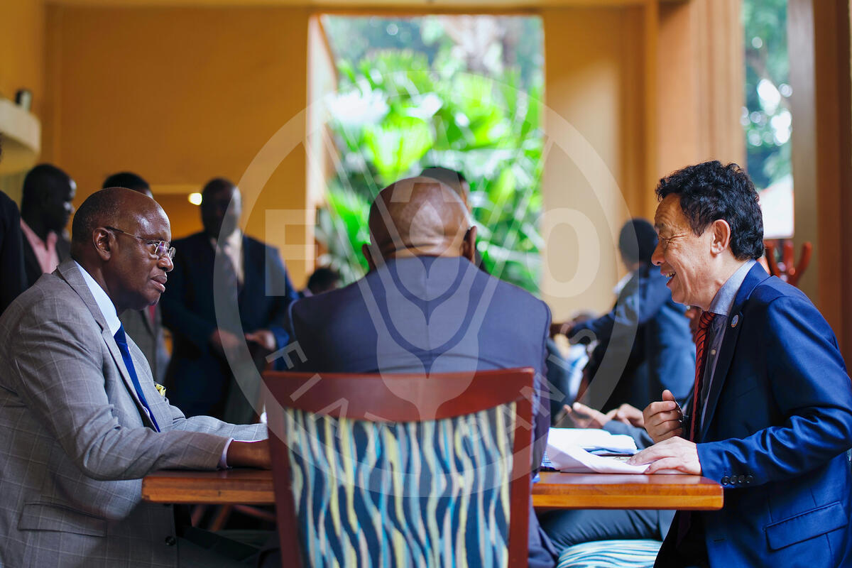 22 July 2025, Kampala, Uganda, FAO Director-General, QU Dongyu talks to Bright Rwamirama, State Minister for Animal Industry, following a their meeting at Serena Hotel.