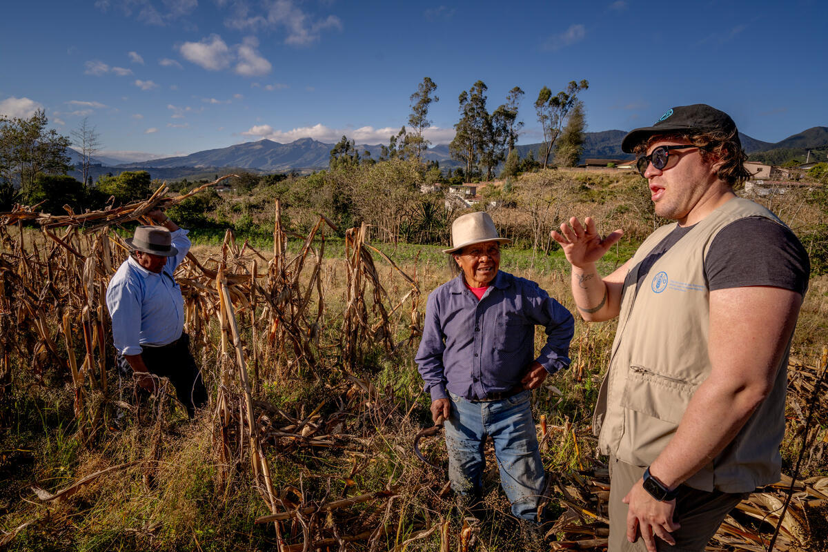 ECUADOR, 2025. FAO staff on the land with local farmer