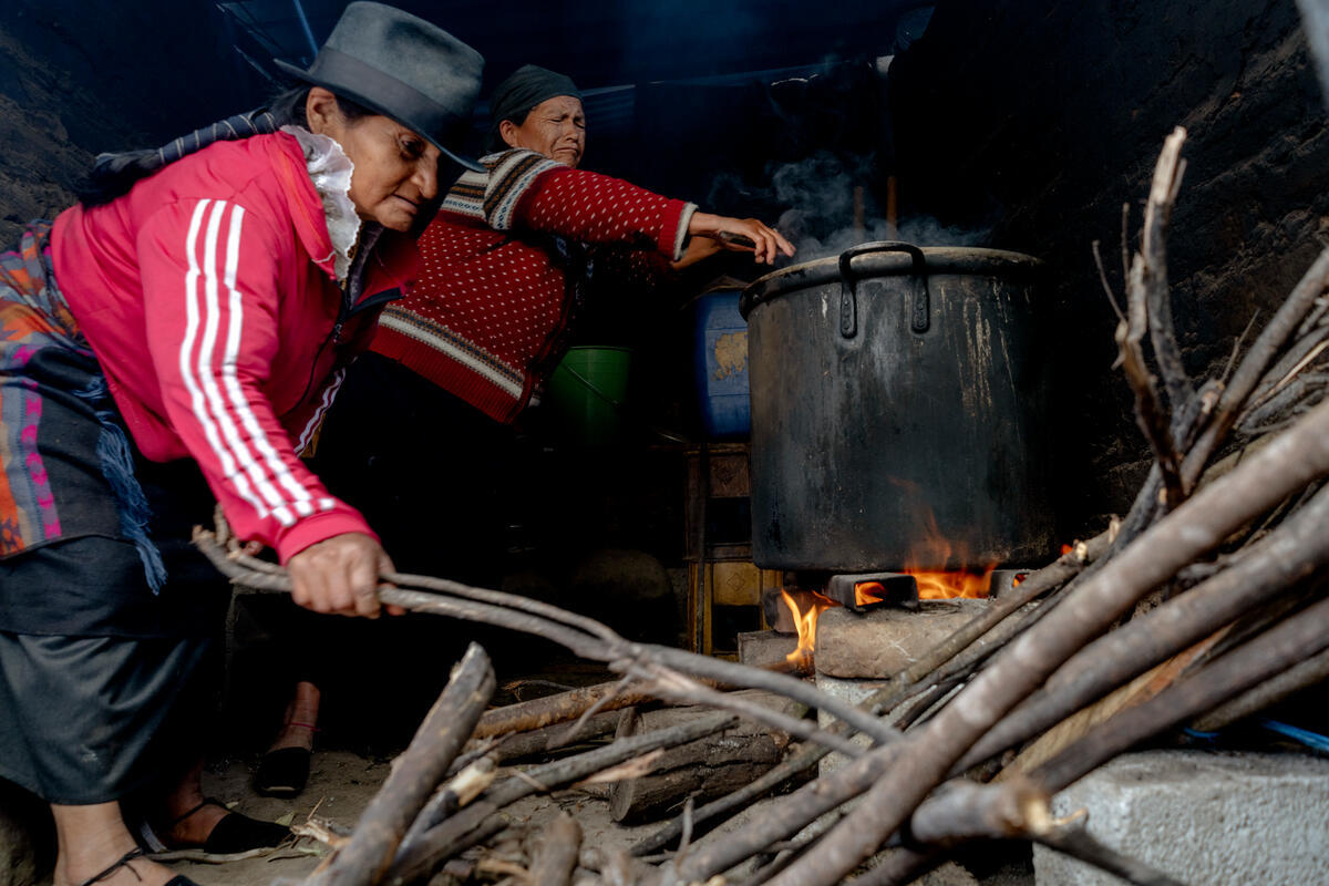 09 July 2025. El Cercado, Ecuador. Women from the El Cercado savings group prepare food over a wood-fired stove. During each monthly meeting, they share meals made with ingredients from their chakras, reinforcing bonds of solidarity, reciprocity, and collective care among families in the community.