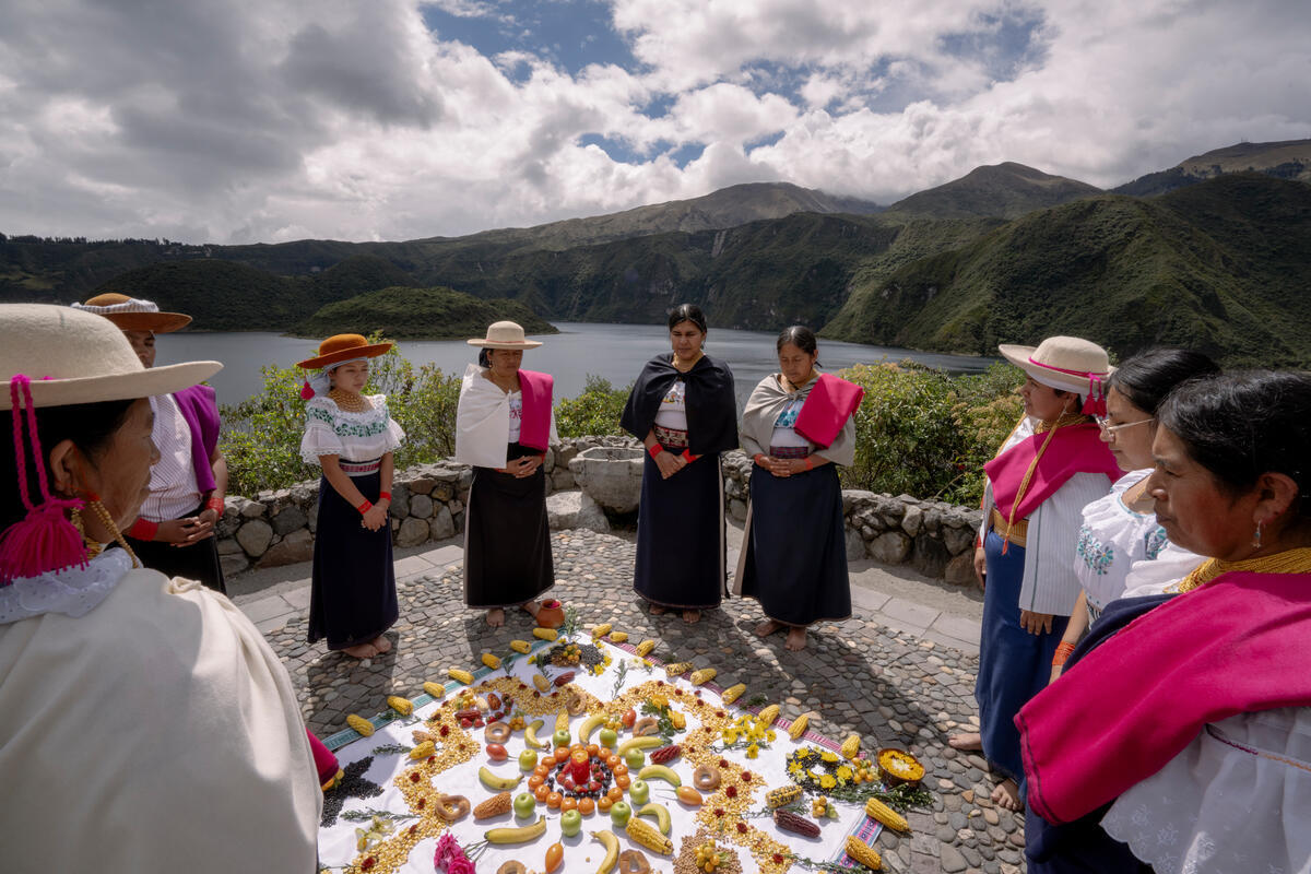ECUADOR, 2025. Women farmers participate in ancestral harvest gratitude ceremony