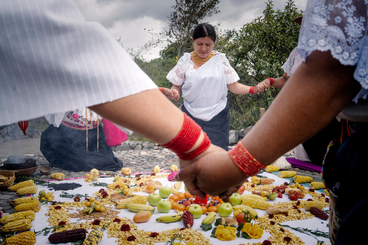 ECUADOR, 2025. Women farmers participate in ancestral harvest gratitude ceremony