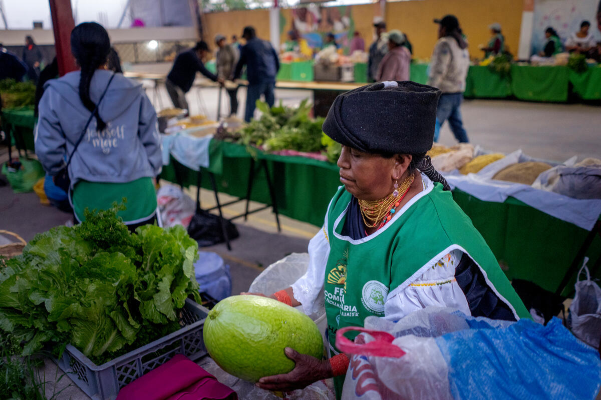 ECUADOR, 2025. Farmer Magdalena prepares her produce to take to the community fair