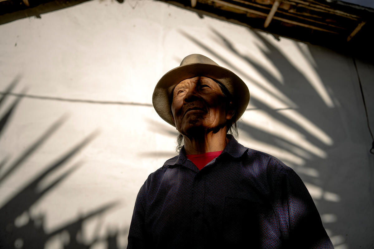 07 July 2025. Cumbas, Ecuador. José MarÃa Cumba, farmer and husband of Magdalena Laine, walks through the courtyard of their home. Together, they preserve a wide variety of native seeds from the Ecuadorian Andes.