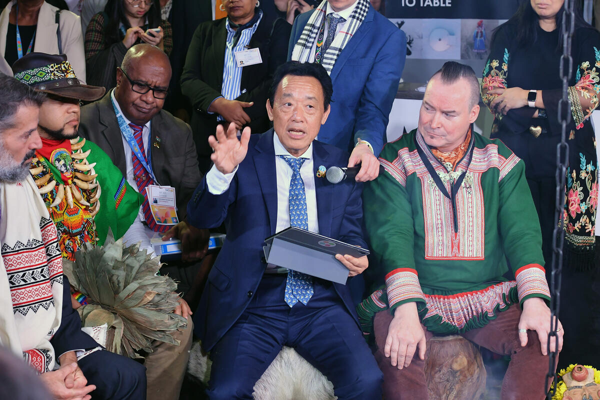 Director-General QU Dongyu delivers his address during the high-level opening ceremony of the Indigenous Peoples' Territory at World Food Forum 2025.