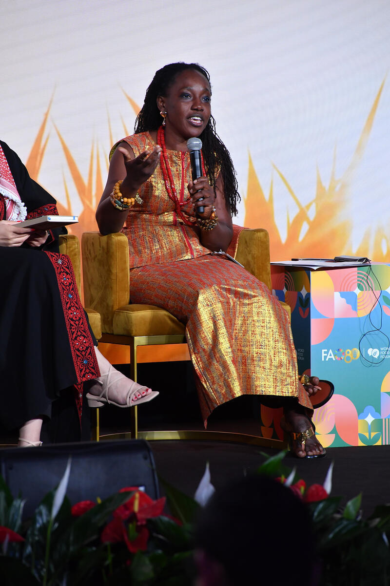 Alberta Nana Akyaa Akosa WFF Ghana Youth Chapter (R) attends the Intergenerational Roundtable: Youth in agrifood policy and governance. Global Youth Forum. The fifth edition of the World Food Forum (WFF), the largest annual gathering of agrifood systems stakeholders globally, runs at FAO headquarters in Rome from 10 to 17 October 2025. FAO Headquarters (Plenary Hall).
