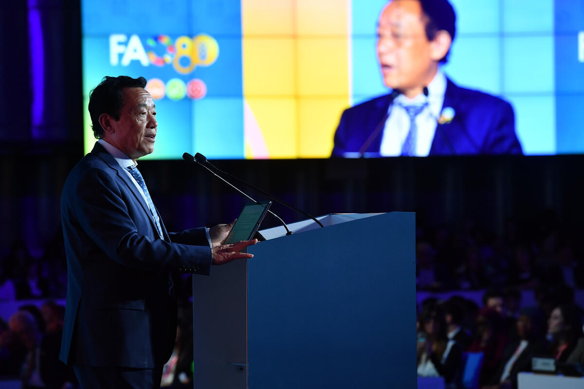 FAO Director-General QU Dongyu delivers his address during the Global Youth Forum Opening Ceremony.