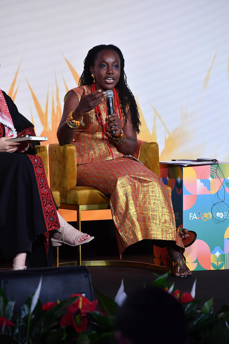 Alberta Nana Akyaa Akosa WFF Ghana Youth Chapter (R) attends the Intergenerational Roundtable: Youth in agrifood policy and governance. Global Youth Forum. The fifth edition of the World Food Forum (WFF), the largest annual gathering of agrifood systems stakeholders globally, runs at FAO headquarters in Rome from 10 to 17 October 2025. FAO Headquarters (Plenary Hall).