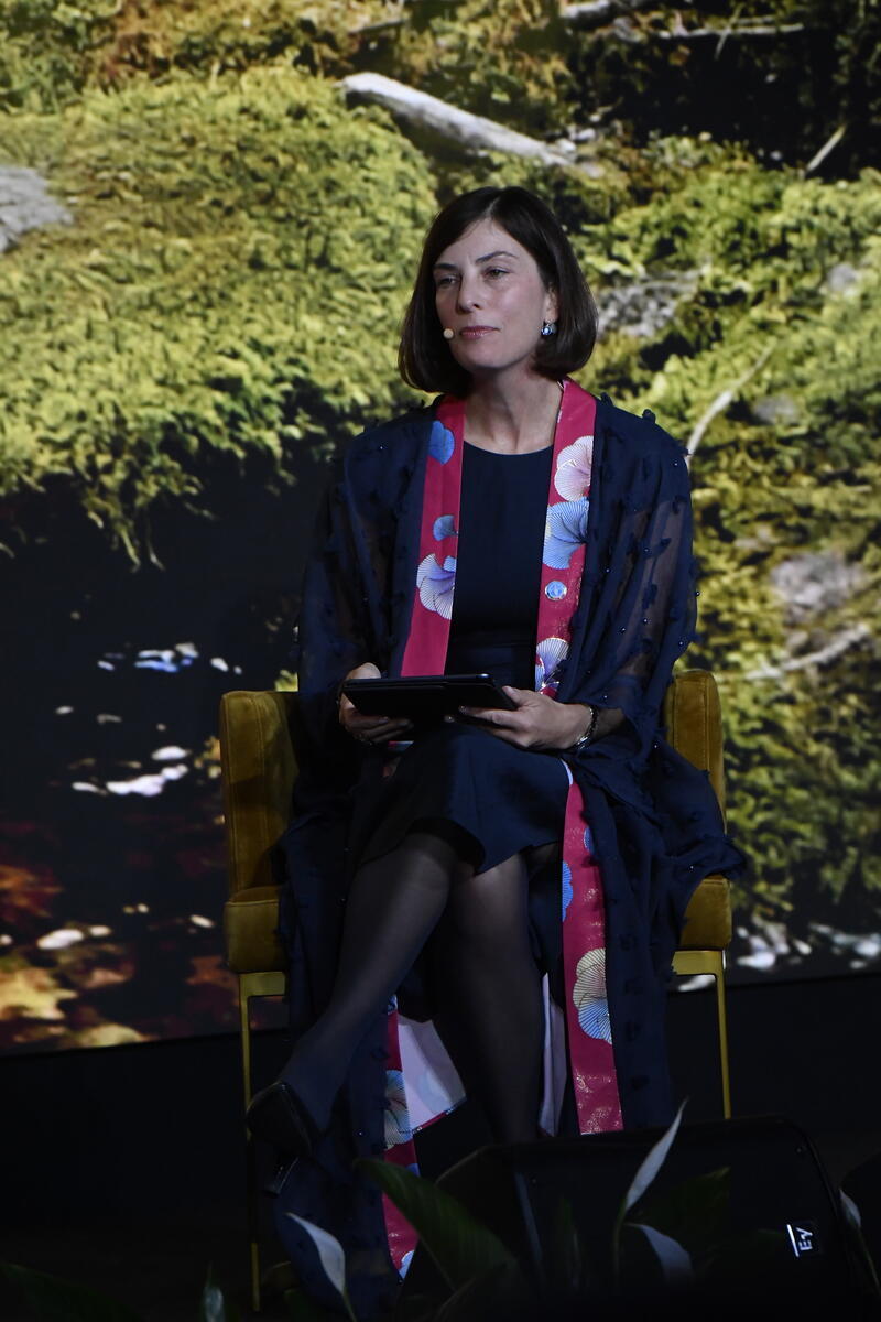 13 October 2025. FAO Headquarters, Rome, Italy. Lauren Phillips, Deputy Director of the Rural Transformation and Gender Equality Division at FAO moderates the "Intergenerational Roundtable 1: Engaging youth in decision-making for the future of our agrifood systems” during the World Food Forum Grand Opening at the World Food Forum 2025.