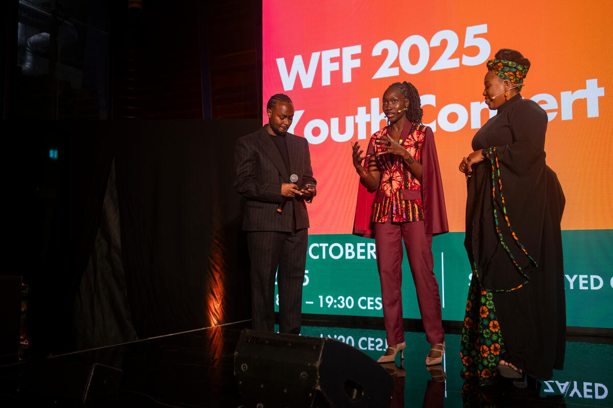 13 October 2025. FAO Headquarters, Rome, Italy. From left to right: Mariatou Sarr, part of the WFF Global Youth Action Initiative in the Youth Culture Programe, and Dr. Rachel V. Brown, Executive Director & Co-founder of the Every Mikkle Foundation and WFF Champion, host at the Youth Concert of the 2025 World Food Forum.