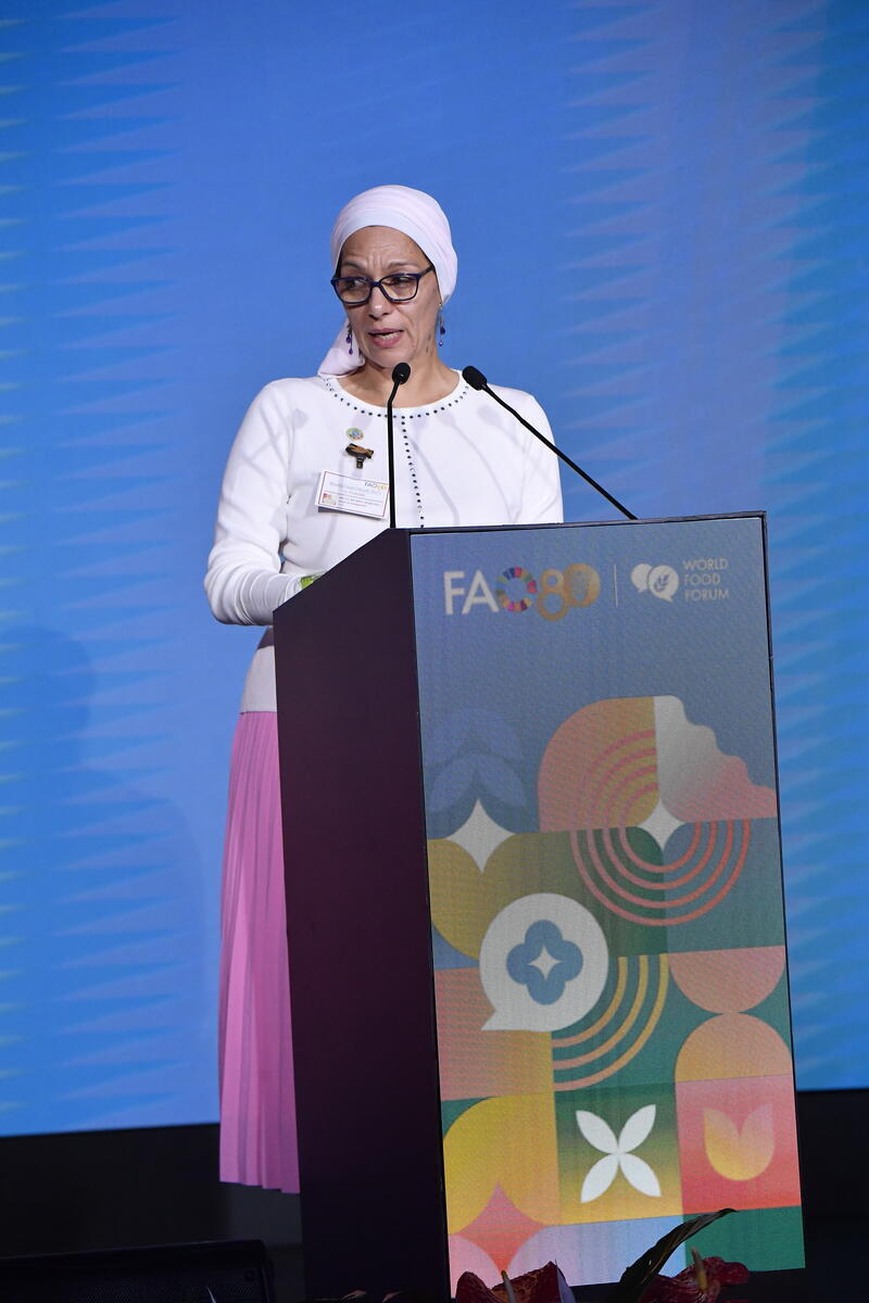 13 October 2025, Rome, Italy. Princess Basma bint Ali, Hashemite Kingdom of Jordan speaks at the World Food Forum (WFF) 2025 Grand Opening. The fifth edition of the World Food Forum (WFF), the largest annual gathering of agrifood systems stakeholders globally, runs at FAO headquarters in Rome from 10 to 17 October 2025. FAO Headquarters (Plenary Hall).