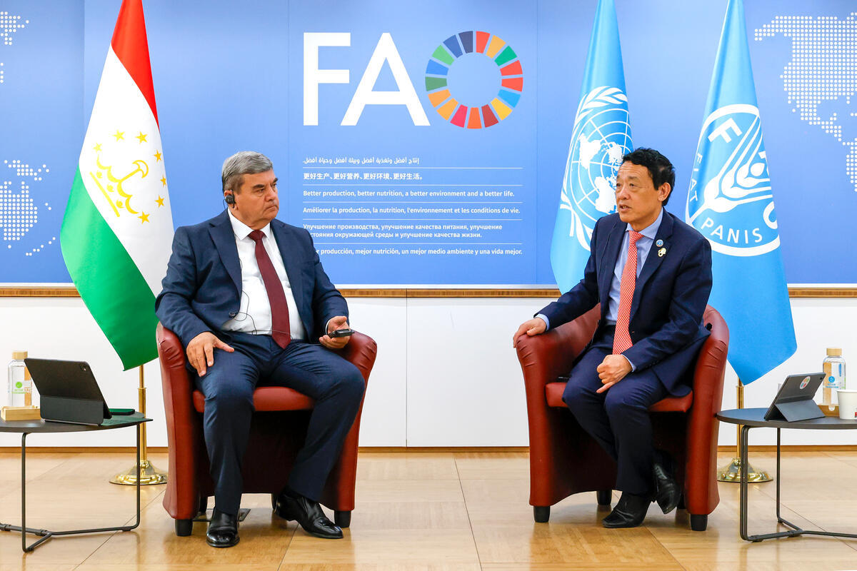 ITALY 2025 - FAO DG meeting Tajikistan Deputy Prime Minister Ziyozoda Sulaimon Rizoi and Minister for Agriculture Qurbon Hakimzoda