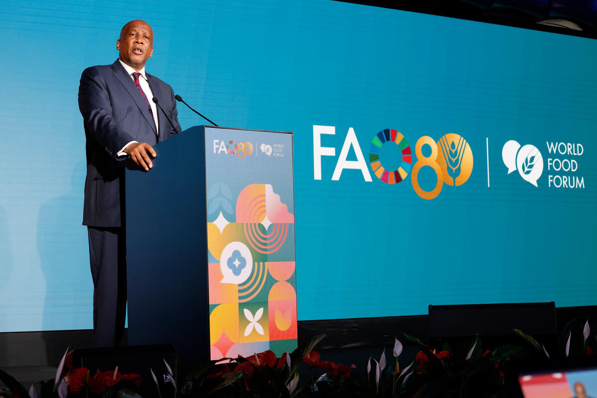 13 October 2025, Rome, Italy. King Letsie III delivers his address during the World Food Forum (WFF) 2025 Grand Opening. The fifth edition of the World Food Forum (WFF), the largest annual gathering of agrifood systems stakeholders globally, runs at FAO headquarters in Rome from 10 to 17 October 2025. FAO Headquarters (Plenary Hall).