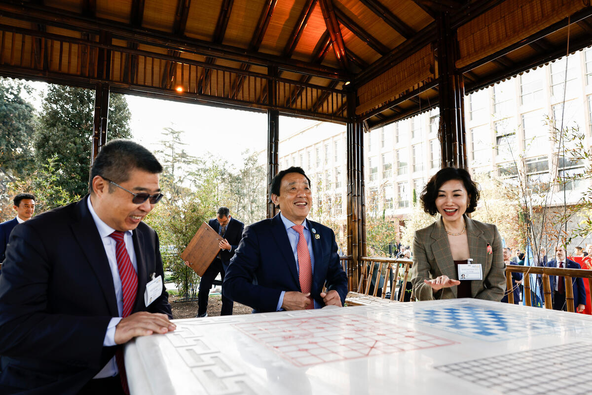 14 October 2025, Rome, Italy. FAO Director-General QU Dongyu (2-R) and Nan Li, International Bamboo and Rattan Organization (INBAR) representative (R), are seen after the inauguration of the Asian Pavilions. World Food Forum 2025. The fifth edition of the World Food Forum (WFF), the largest annual gathering of agrifood systems stakeholders globally, runs at FAO headquarters in Rome from 10 to 17 October 2025.