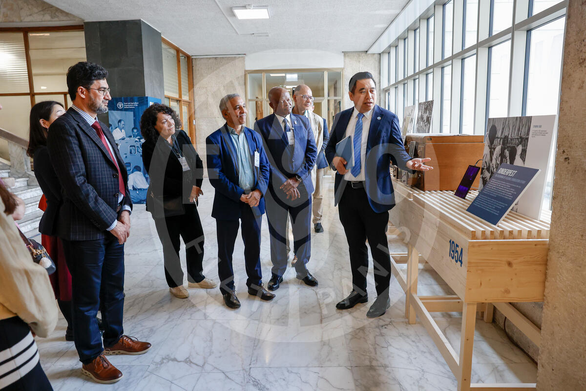24 April 2025, Rome, Italy. (R) Thanawat Tiensin, Assistant Director General and Director NSA showing the Rinderpest eradication commemorative point to his guests. 20th meeting of the Rinderpest Joint Advisory Committee. FAO Headquarters (Queen Juliana Room).