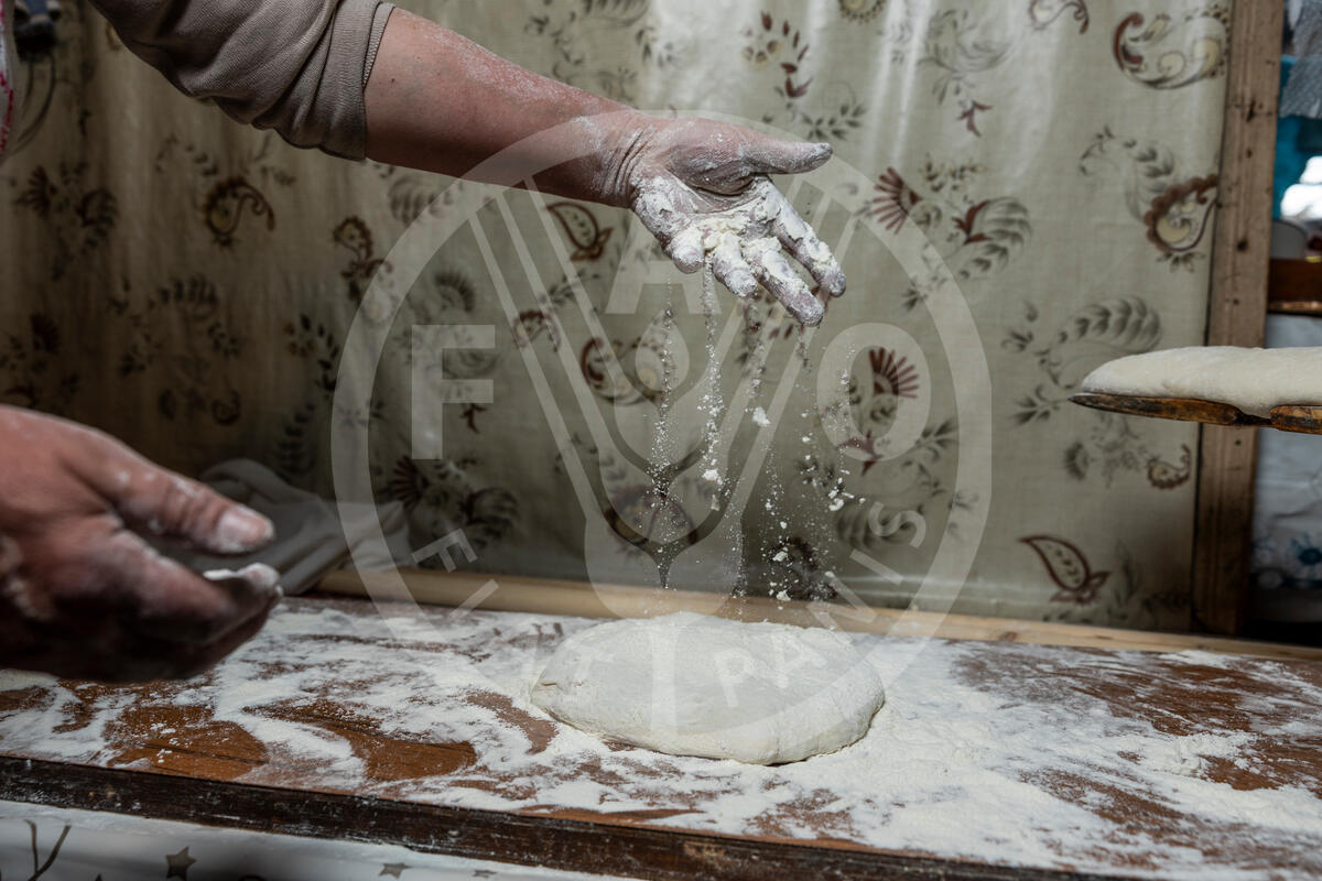 May 2025, Khizabavra, Georgia — Nonna Khutsishvili bakes bread in her traditional oven, Khizabavra, Georgia. Nonna and her husband are supported by the Benefit-sharing Fund, the operational mechanism of the International Treaty on Plant Genetic Resources for Food and Agriculture (ITPGRFA), which facilitates international cooperation on plant genetic resources.