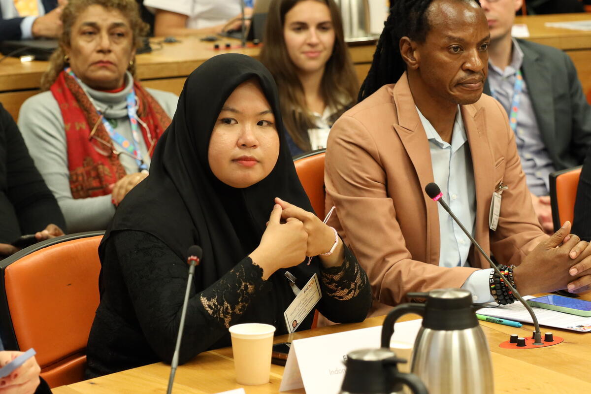 15 October 2025, FAO Rome Headquarters, Italy. Ellena Kavarera, Head of the home bureau department of Indonesian Coastal Youth Union, speaking at the Youth Assembly session on Fisheries and Aquaculture