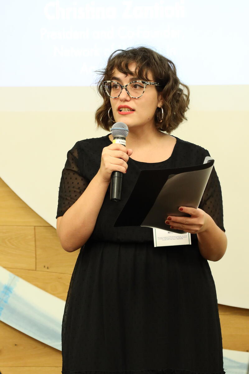 Christina Zantioti, President and Co-Founder of the Network of Women in Aquaculture, intervenes at the Youth Assembly session on Fisheries and Aquaculture.