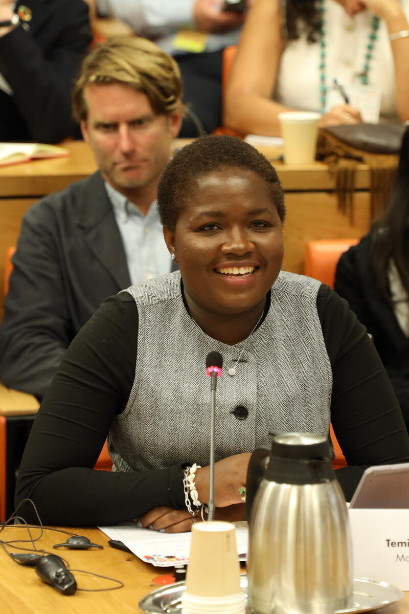 Temiloluwa J. Akinyemi, Fisheries and Aquaculture researcher at Monterey Bay Aquarium, intervenes at the Youth Assembly session on Fisheries and Aquaculture.