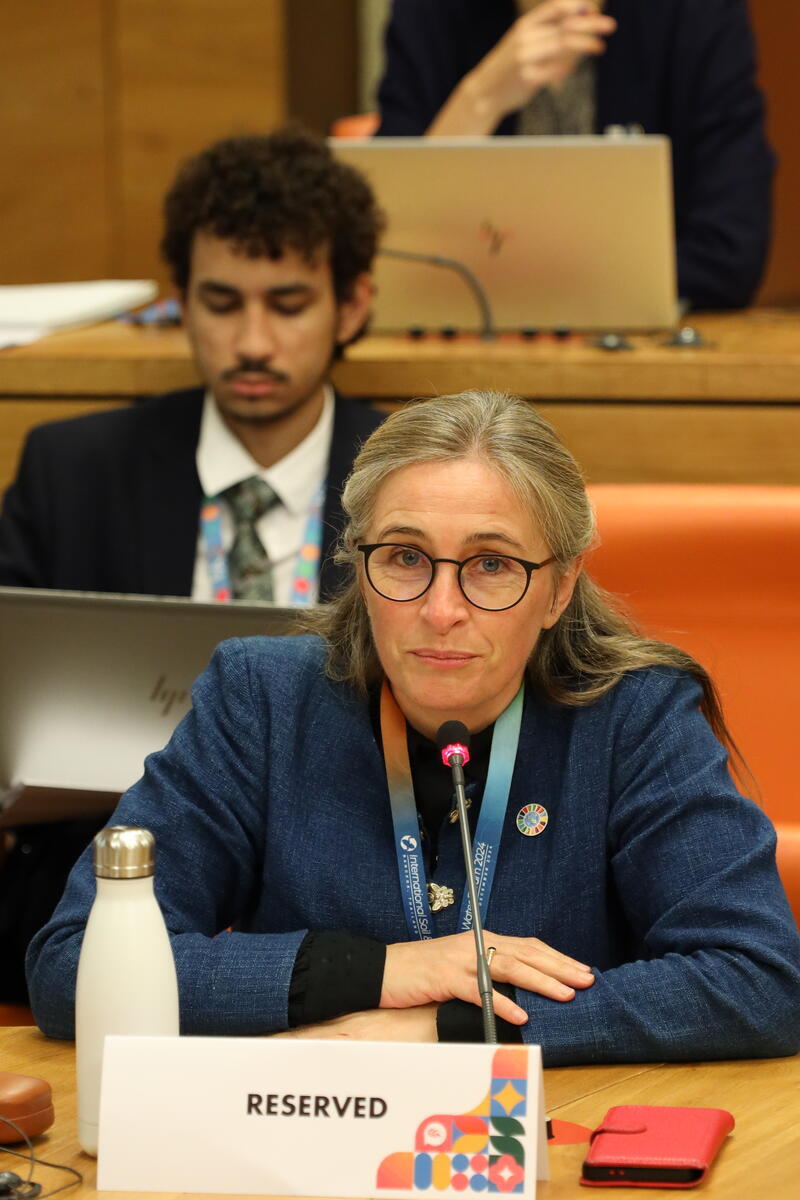 Aurélie Brès, Land and Water Officer at FAO, presents the roadmap for the development of the guidance and key components at the Youth Assembly session on Desertification, Land Degradation and Drought.