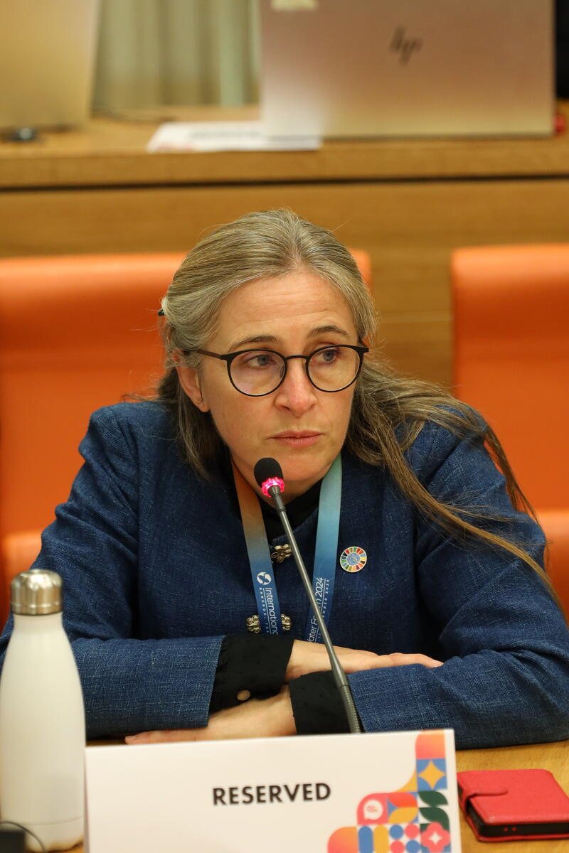 Aurélie Brès, Land and Water Officer at FAO, presents the roadmap for the development of the guidance and key components at the Youth Assembly session on Desertification, Land Degradation and Drought.