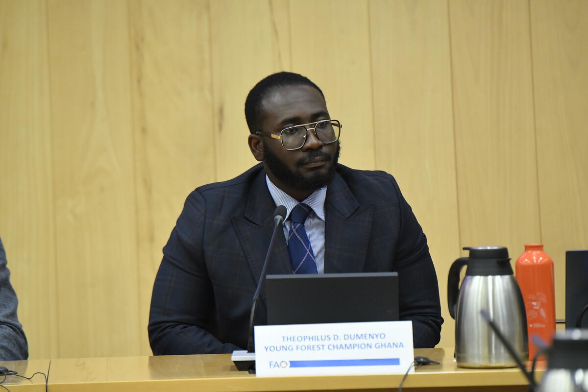 15 October 2025, Rome, Italy. Theophilus Dumenyo, Founder of ENTO Organics & Young Forest Champion Ghana attends the event Young Forest Champions: Indigenous and Rural Youth in Action. World Food Forum (WFF) 2025. The fifth edition of the World Food Forum (WFF), the largest annual gathering of agrifood systems stakeholders globally, runs at FAO headquarters in Rome from 10 to 17 October 2025. FAO Headquarters (German Room).