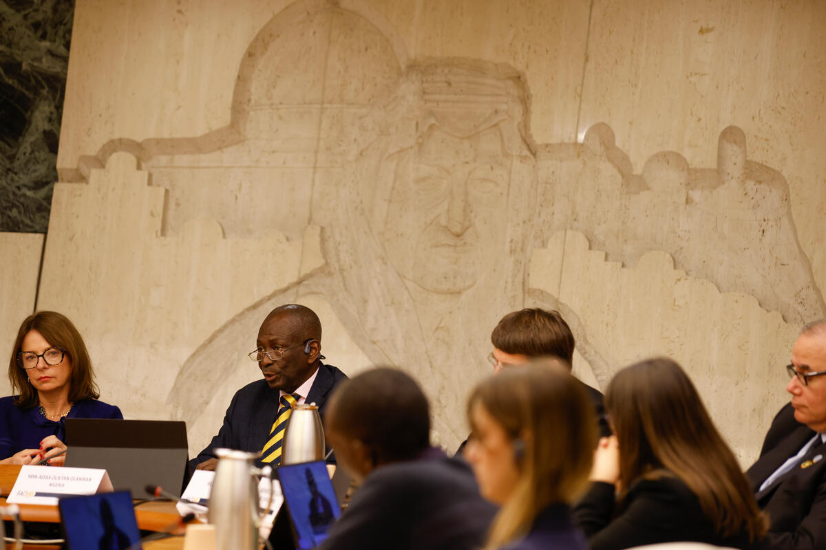 15 October, 2025. FAO Headquarters, Rome, Italy. Roundtable at the 'Intersessional Event of the FAO Committee on Commodity Problems: Better information for better policies' during the 2025 World Food Forum. As seen from left to right: H.E. Krisztina Bende, Ambassador and Permanent Representative of Switzerland to the UN Organisations in Rome; H.E. Yaya Adisa Olaitan Olaniran, Permanent Representative of Nigeria at Rome-based Food Agencies of the United Nations; Hubertus Gay, Head of the Agro-Food Trade and Markets Division in the Trade and Agriculture Directorate at OECD; and MÃ ximo Torero, FAO Chief Economist.