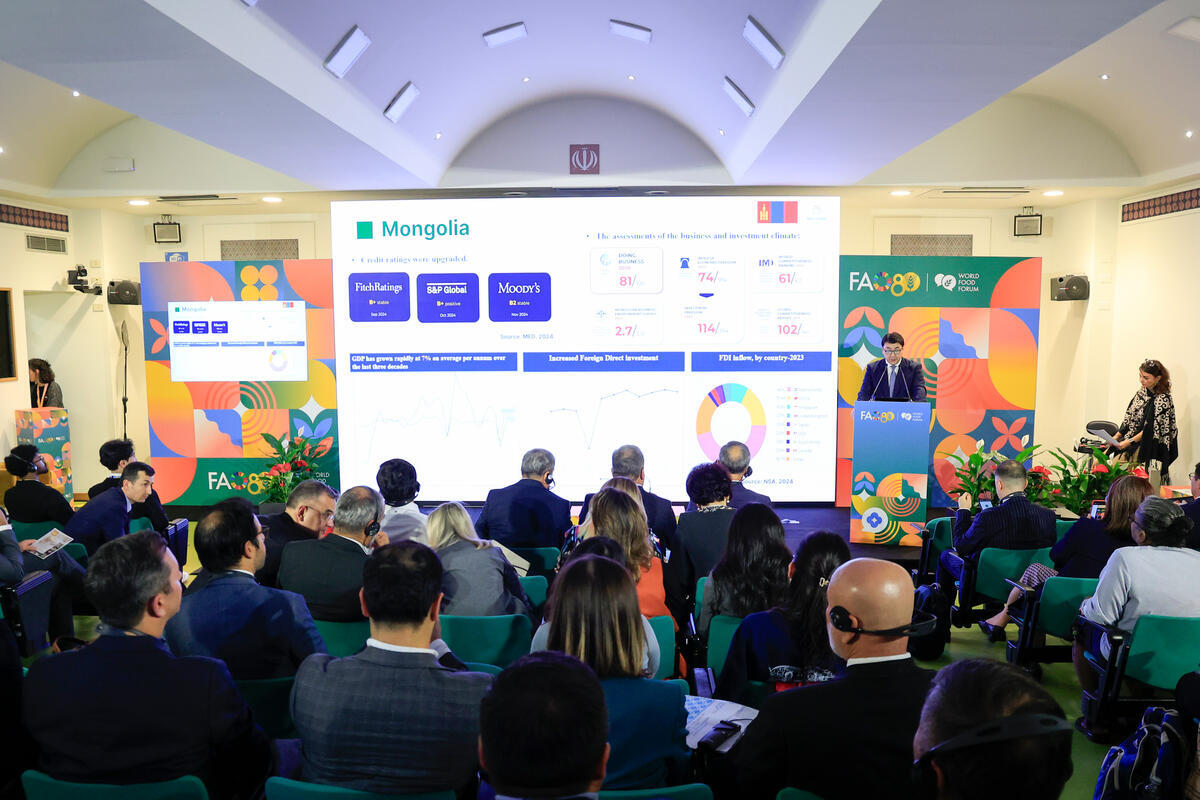 15 October 2025, Rome, Italy. Investment Plan Presentations: Tajikistan and Mongolia. Hand-in-Hand (HIH) Initiative Investment Forum 2025, World Food Forum (WFF) 2025. The fifth edition of the World Food Forum (WFF), the largest annual gathering of agrifood systems stakeholders globally, runs at FAO headquarters in Rome from 10 to 17 October 2025. FAO Headquarters (Iran Room).