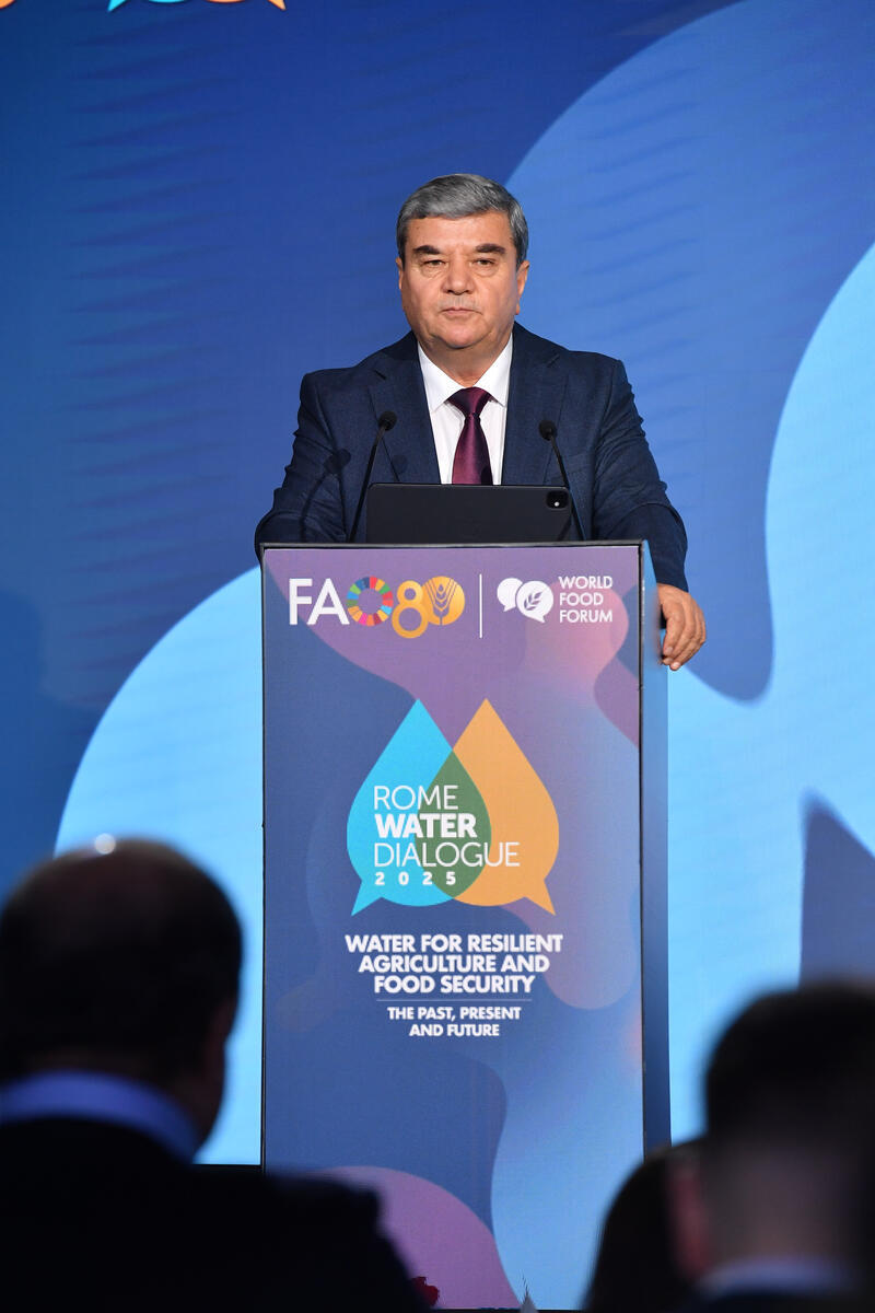 15 October 2025, Rome, Italy. Ziyozoda Sulaimon Rizoi, Deputy Prime Minister, Republic of Tajikistan delivers his address during the World Food Forum (WFF) 2025. The fifth edition of the World Food Forum (WFF), the largest annual gathering of agrifood systems stakeholders globally, runs at FAO headquarters in Rome from 10 to 17 October 2025. FAO Headquarters, (Plenary Hall)