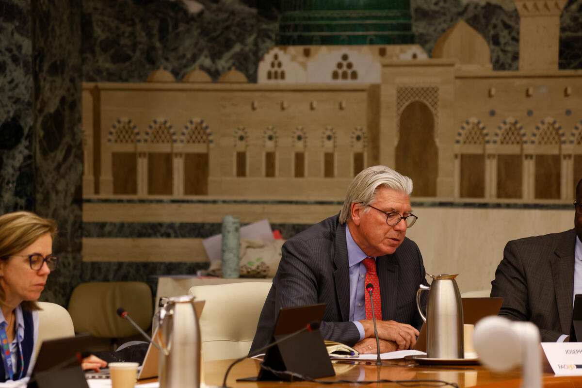 15 October, 2025. FAO Headquarters, Rome, Italy. Joseph Glauber, Research Fellow Emeritus in the Director General's Office at the International Food Policy Research Institute (IFPRI), speaks at the 'Intersessional Event of the FAO Committee on Commodity Problems: Better information for better policies' during the 2025 World Food Forum.