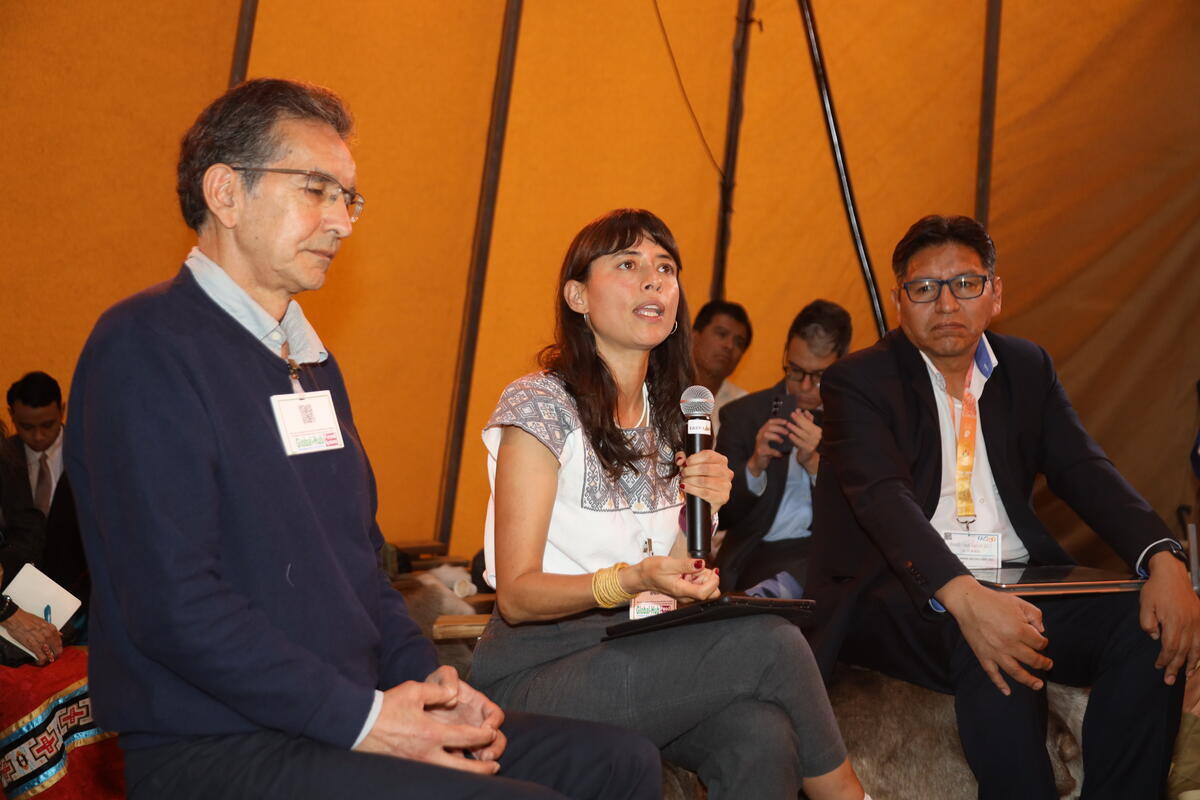 15 October 2025. FAO Headquarters, Rome, Italy. Juliana Sánchez Castellanos (C), Leader of the Regional Working Group on Amazonic Indigenous Peoples Food Systems of the North Amazon Alliance, from Colombia, delivers her address during “Current State of the Amazonian Indigenous Peoples’ food system” at World Food Forum 2025.