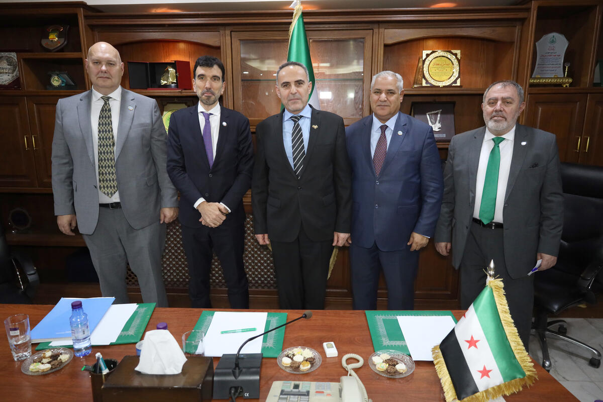 02 September 2025, Damascus, Syria. FAO Deputy Director-General Maurizio Martina (2nd from R), FAO Regional Representative, Rein Paulsen, Director of Emergencies at FAO Rome, AbdulHakim Al Waer, FAO’s Assistant Director-General for the Near East and North Afric and Toni Ettel FAO Representative in Syria meeting meeting with Amjad Bader (C), Minister of Agriculture, to discuss opportunities of collaboration towards a better agricultural production in Syria.