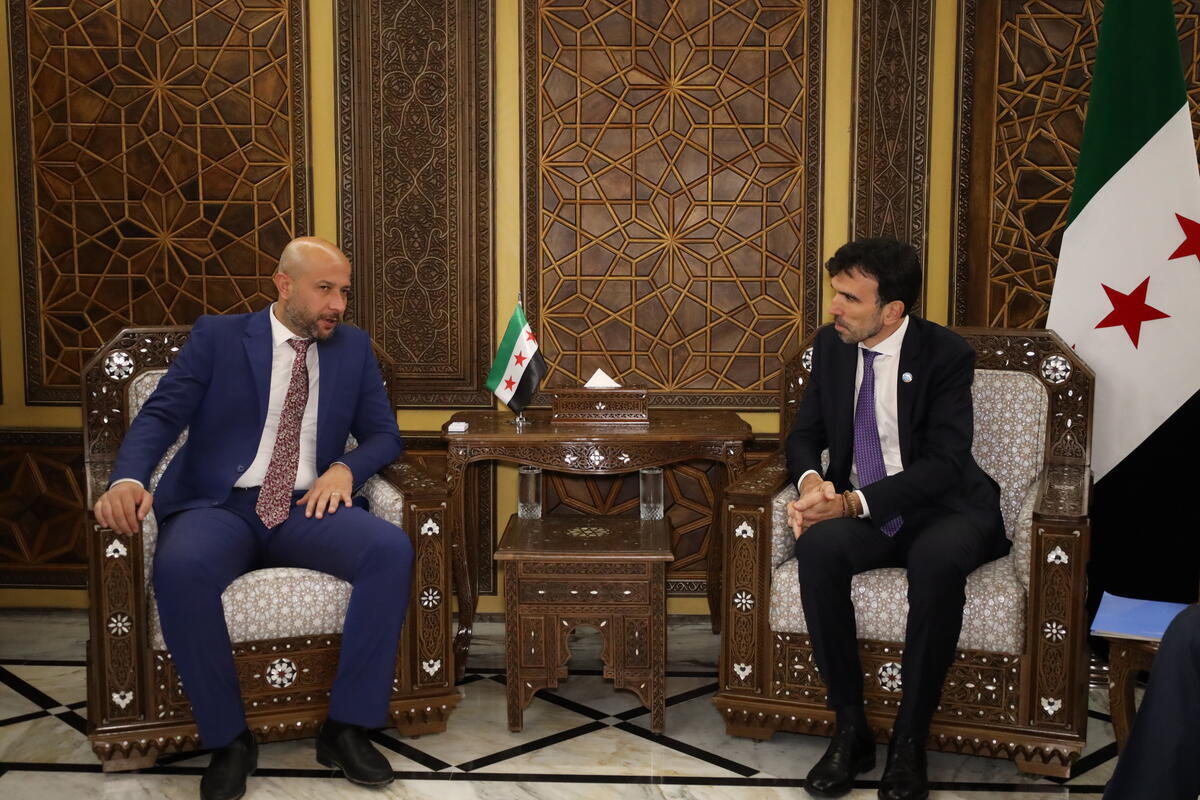02 September 2025, Damascus, Syria. FAO Deputy Director-General Maurizio Martina (R), meeting with Minister of Disaster Management, Raid AlSaleh in Ministry of Disaster Management.