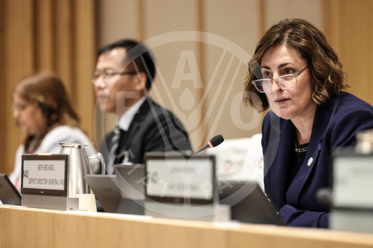 19 March 2025, Rome, Italy. FAO DDG Beth Bechdol speaks during the Side Session on Innovative Research and tools to prevent and contain Fusaroum TR4 spread. 19th Session of the Commission on Phytosanitary measures (CPM-19). FAO Headquarters (Red Room).
