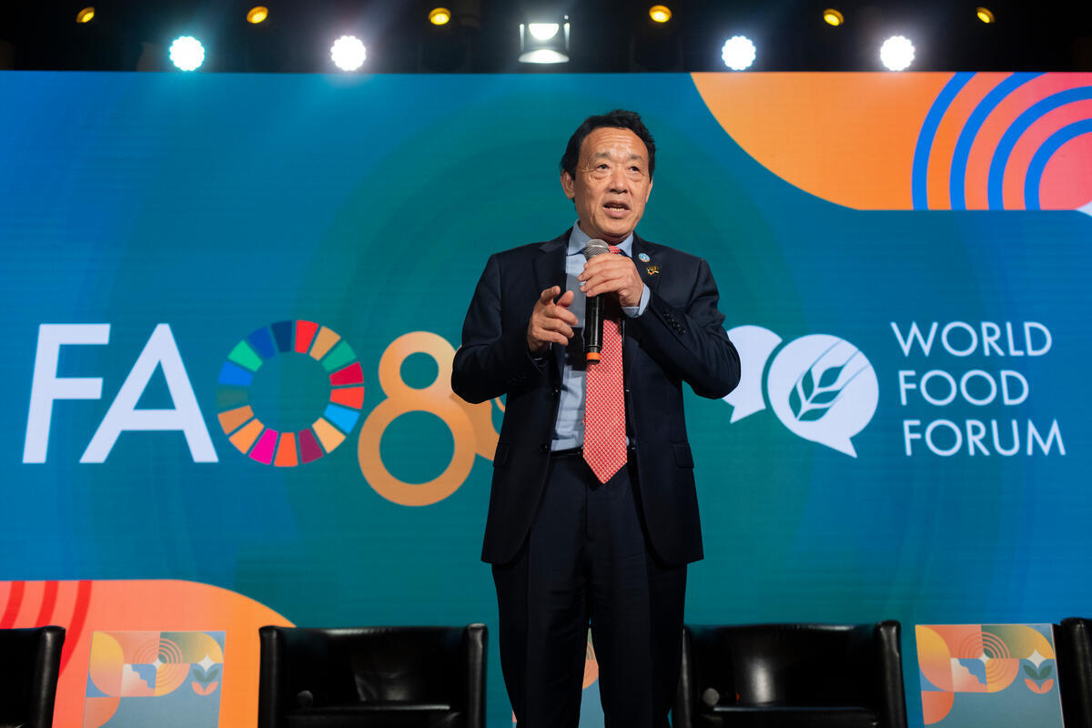 14 October 2025, Rome, Italy. FAO Director-General QU Dongyu delivers his address during the Leading the Future of Agrifood Systems - Agrifood Leadership Education Programme (ALEP).World Food Forum (WFF) 2025. The fifth edition of the World Food Forum (WFF), the largest annual gathering of agrifood systems stakeholders globally, runs at FAO headquarters in Rome from 10 to 17 October 2025.