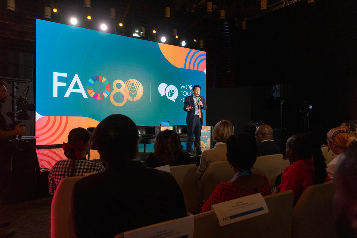14 October 2025, Rome, Italy. FAO Director-General QU Dongyu delivers his address during the Leading the Future of Agrifood Systems - Agrifood Leadership Education Programme (ALEP).World Food Forum (WFF) 2025. The fifth edition of the World Food Forum (WFF), the largest annual gathering of agrifood systems stakeholders globally, runs at FAO headquarters in Rome from 10 to 17 October 2025.