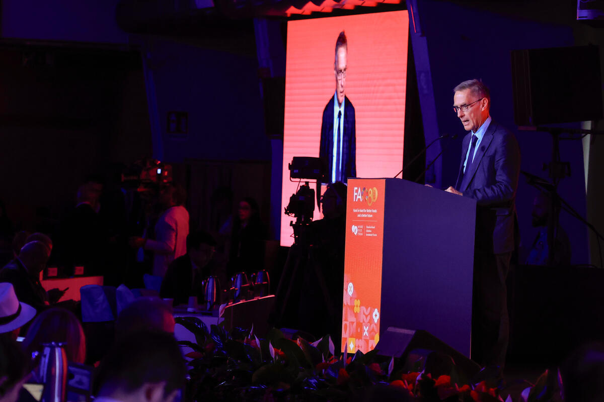14 October 2025, Rome, Italy. Donal Brown, Associate Vice President, Department fir Country Operations, IFAD. Official opening of the Hand-in-Hand (HIH) Initiative Investment Forum 2025. World Food Forum (WFF) 2025. The fifth edition of the World Food Forum (WFF), the largest annual gathering of agrifood systems stakeholders globally, runs at FAO headquarters in Rome from 10 to 17 October 2025. FAO Headquarters (Plenary Hall).