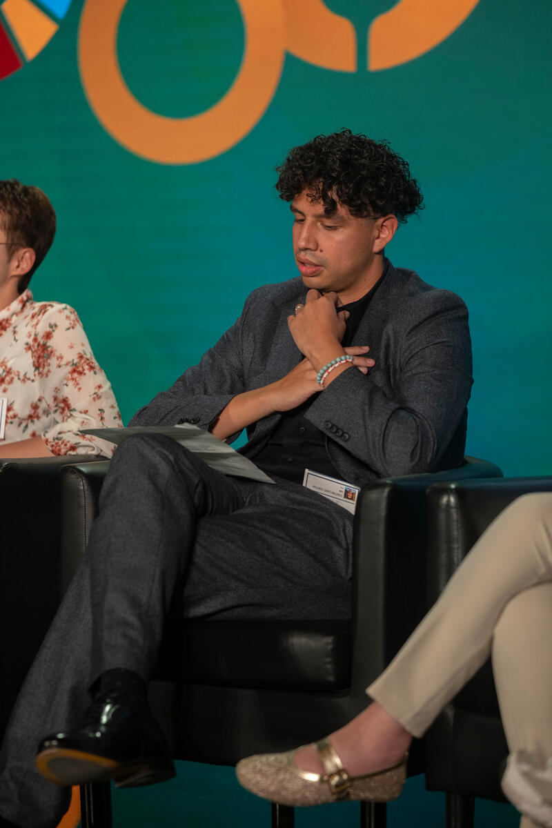 14 October 2025. FAO Headquarters, Rome, Italy. Mohamed Langston Gora Diagne, Junior Professional Officer at the FAO Office in Burundi, moderates a session during “From Potential to Progress: FAO driving excellence in youth programming for agrifood systems transformation”, at the 2025 World Food Forum