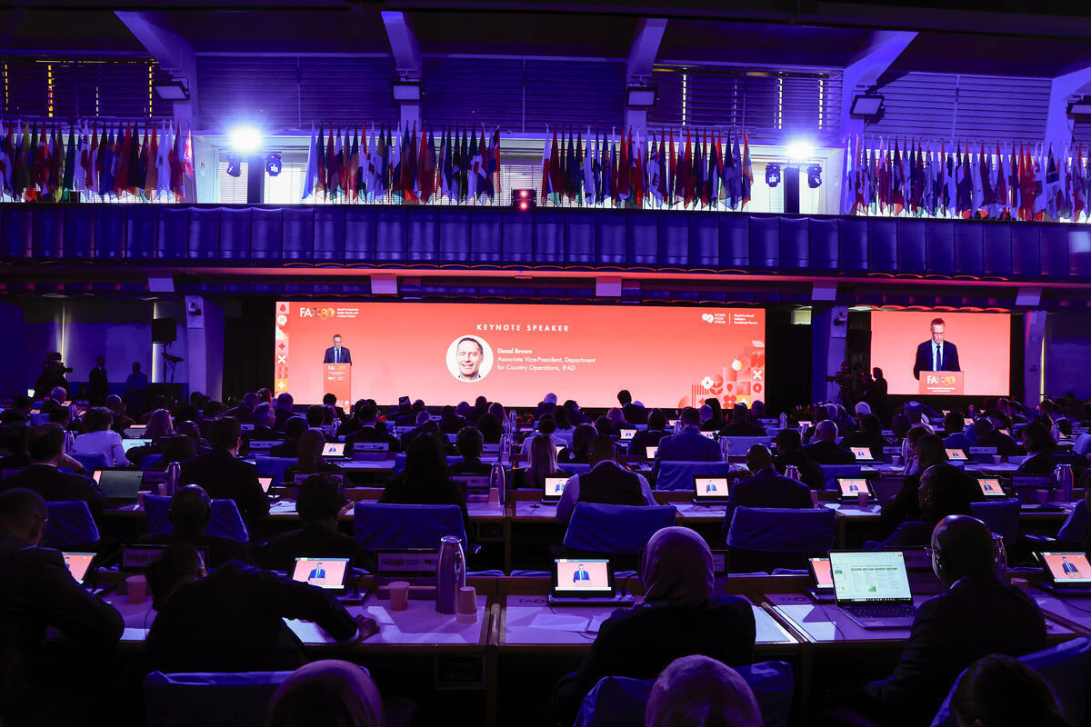 14 October 2025, Rome, Italy. Donal Brown, Associate Vice President, Department fir Country Operations, IFAD. Official opening of the Hand-in-Hand (HIH) Initiative Investment Forum 2025. World Food Forum (WFF) 2025. The fifth edition of the World Food Forum (WFF), the largest annual gathering of agrifood systems stakeholders globally, runs at FAO headquarters in Rome from 10 to 17 October 2025. FAO Headquarters (Plenary Hall).